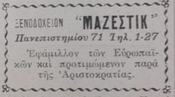 Το ξενοδοχείο «Majestic» το 1930. Πηγή: Αθήνα: μεταμορφώσεις του αστικού τοπίου: από τη Νεοελληνική Ιστορική Συλλογή Κωνσταντίνου Τρίπου / σχόλια Μάρω Καρδαμίτση-Αδάμη. Αθήνα: Μουσείο Μπενάκη, 2009. Βιβλιοθήκη ΕΛΙΑ-ΜΙΕΤ.