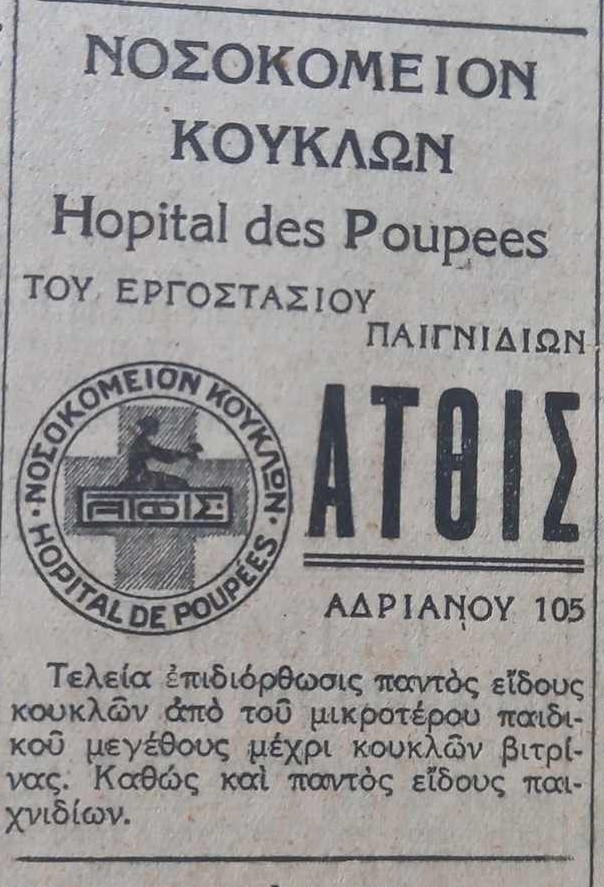 «Νοσοκομείο για Κούκλες. Πηγή: Ακρόπολις, 3.11.1932. Βιβλιοθήκη ΕΛΙΑ/ΜΙΕΤ.