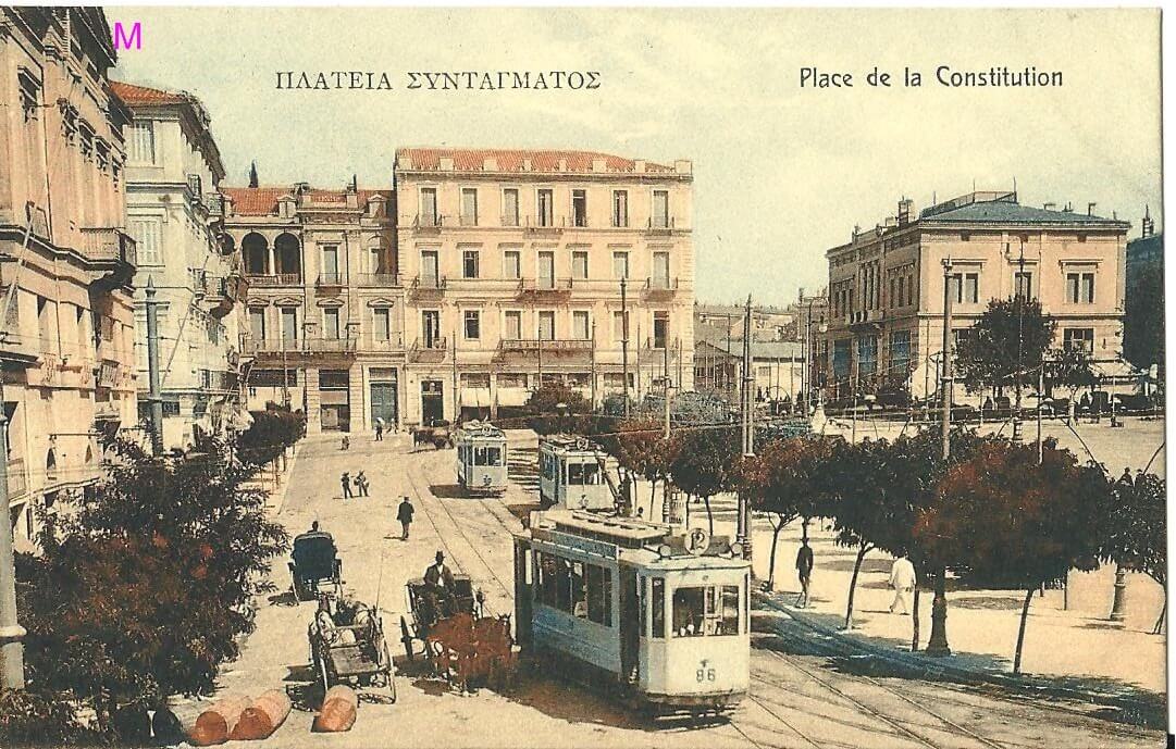 Το ιπποκίνητο τραμ περνά από την πλατεία Συντάγματος. Πηγή: Constitution Square. Συλλογή καρτ ποστάλ (Φωτογραφικό Αρχείο ΕΛΙΑ-ΜΙΕΤ, CP.CPATH.CPATH1.240)
